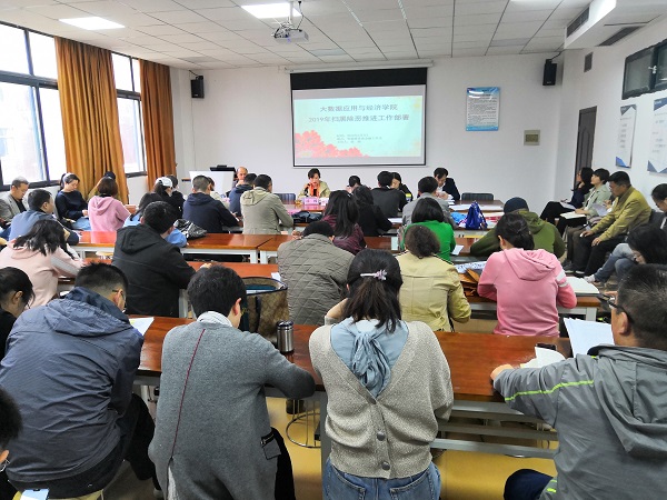 2019年5月7日下午,大数据应用与经济公司在明德楼普惠金融工作室2019年扫黑除恶工作推进会。在家的领导班子成员、全体教职工参加了会议,党委书记徐梅主持会议。