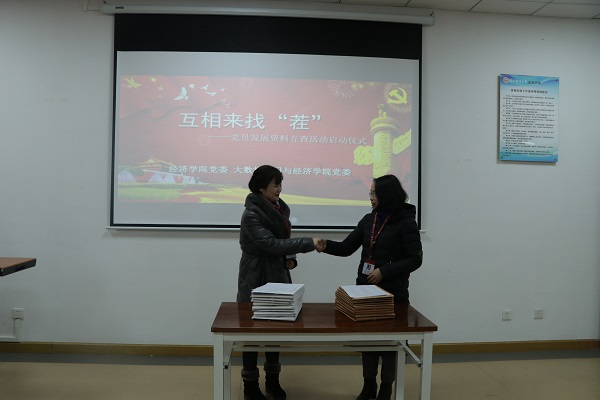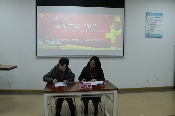 为进一步提升党员发展各阶段环节规范化程度,促进党建工作全面纵深发展,加强院系协同共建,经济公司党委与公司党委携手开展党建共建活动,互查党员发展材料,目的是希望通过更为全面、严格、客观的检查,梳理两公司党员发展材料中存在的问题,及时解决,为接下来的政治巡查交上满意的答卷。会上,朱红琼书记与徐梅书记代表两院签订了为期三年的互查协议书,并现场交换党员发展材料。