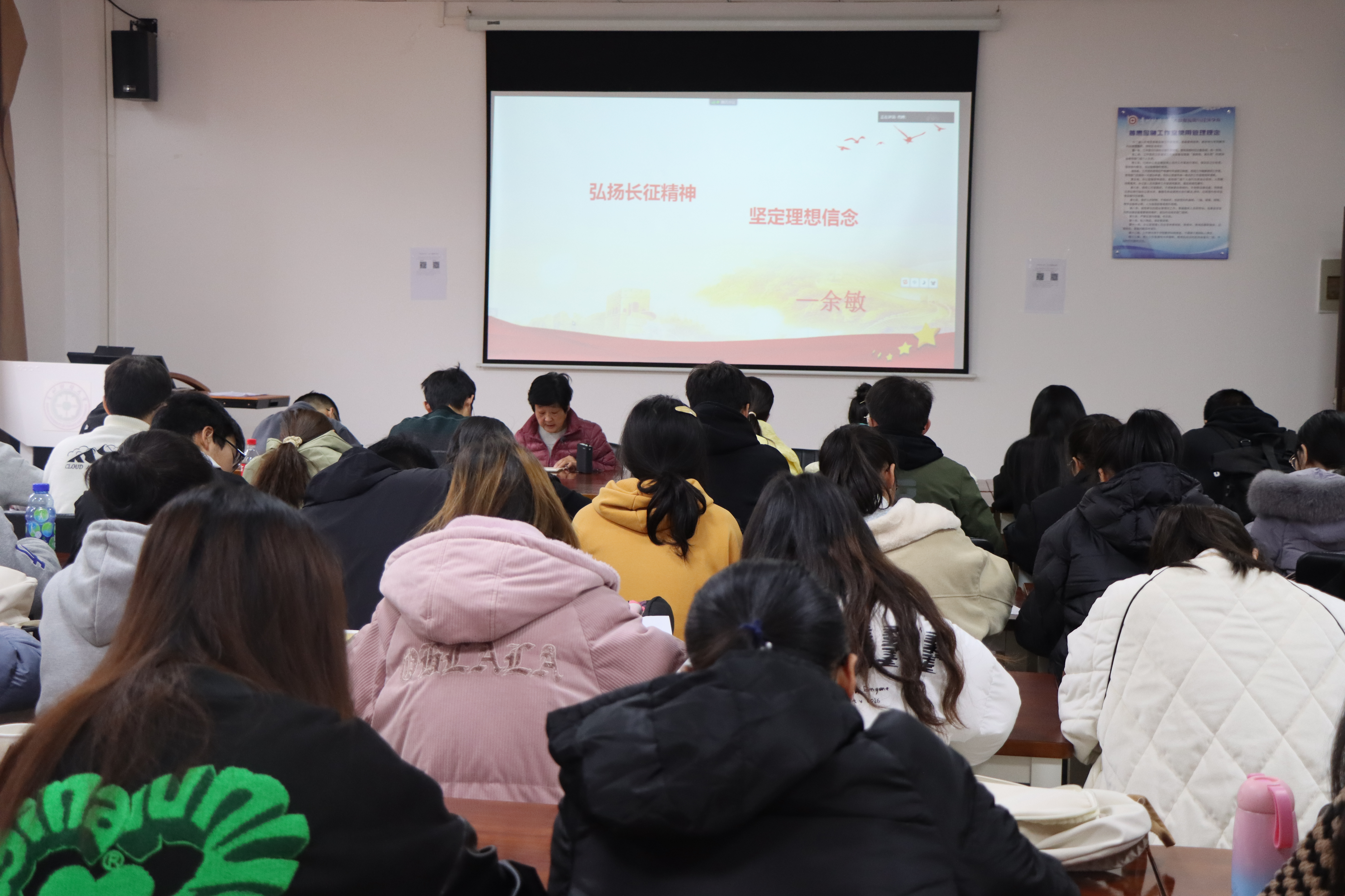 课上,余敏老师首先对红军长征的背景作出介绍,她结合红军长征途中所经历的各种困难与挫折,为同学们具体讲解了长征精神乐于吃苦、不惧艰难的革命乐观主义;勇于战斗、无坚不摧的革命英雄主义;重于求实、独立自主的创新胆略;善于团结、顾全大局的集体主义。最后,余敏老师就如何“弘扬长征精神,坚定理想信念”对同学们提出了三个要求,强调同学们要认真培育践行社会主义核心价值观;努力学好专业知识,多读书,读好书;同时也要坚定理想信念,心中有信念,脚下才有力量。