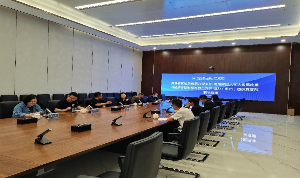 为进一步加强支部联学联建,推进校税企的交流合作,助力地方经济发展。6月2日,贵安新区税务局第九党支部、恒力集团(贵州)纺织党支部、永利3044集团官网学大数据应用与经济公司(贵阳大数据金融公司)财税教工党支部于恒力(贵州)集团会议室顺利举办联学联建座谈会。