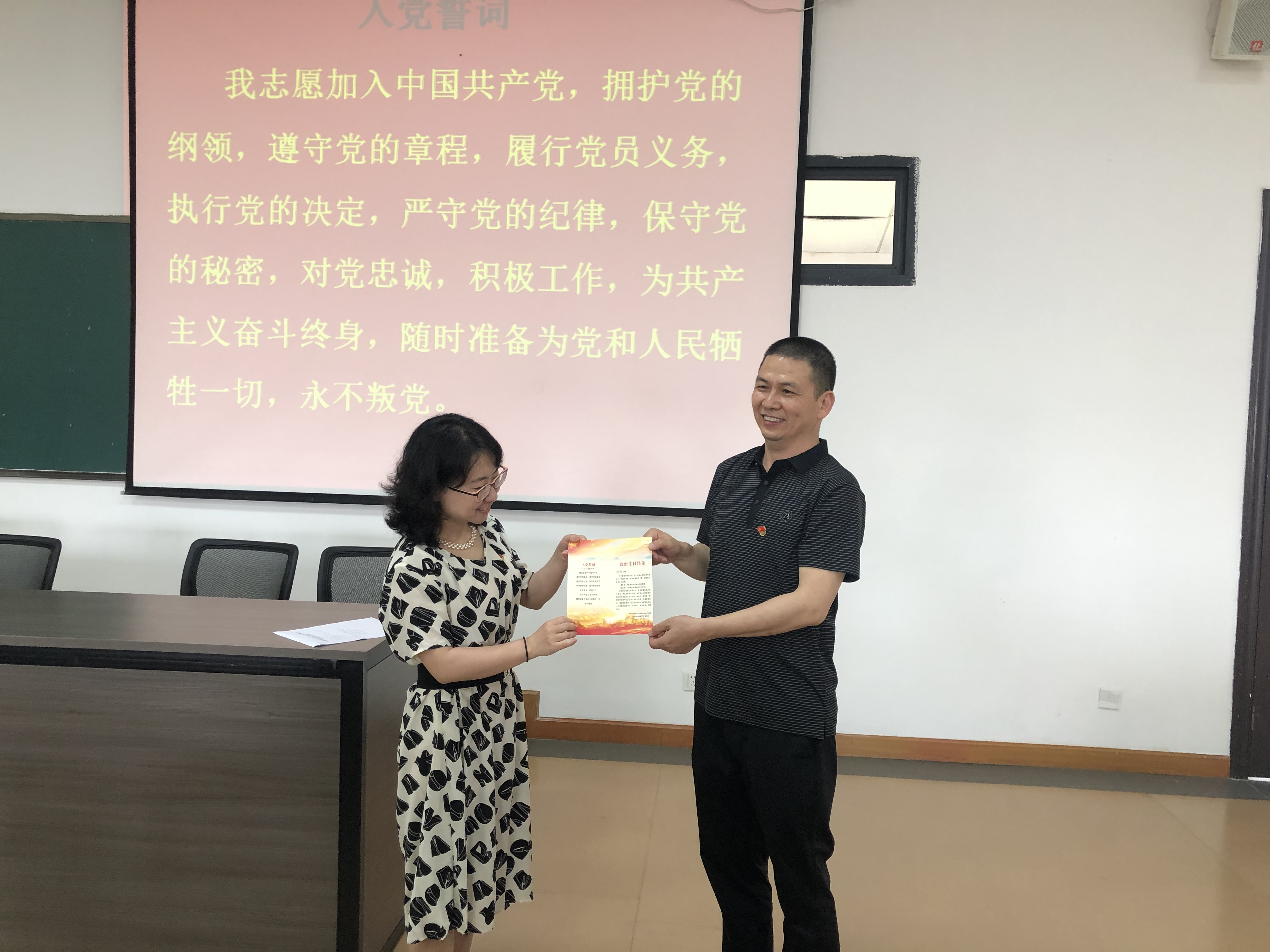 党员过“政治生日”,是对党员理想信念的再教育、责任使命的再承诺、党性锤炼的再提高。会上,公司党委书记姜友文带领全体参会党员重温入党誓词,在党旗面前再次庄严宣誓。随后,姜友文同志向杨杨同志赠送了党员“政治生日”贺卡。杨杨同志发表“政治生日”感言时讲到,作为一名党员干部,要时刻不忘初心牢记使命,主动作为担职尽责,把衷心拥护“两个确立”、忠诚践行“两个维护”刻进骨子里、融入血脉中、落到行动上。把思想和行动统一到围绕“四新”主攻“四化”主战略、“四区一高地”主定位的重大决策部署上来,为贵州的发展贡献自己的一份力量。