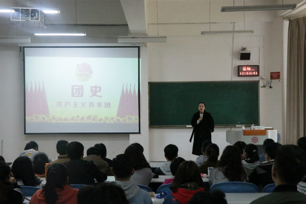 3月26日中午,大数据应用与经济公司刘怡老师在进学楼1-1为团课培训班学员上“共青团发展历史”的专题团课。