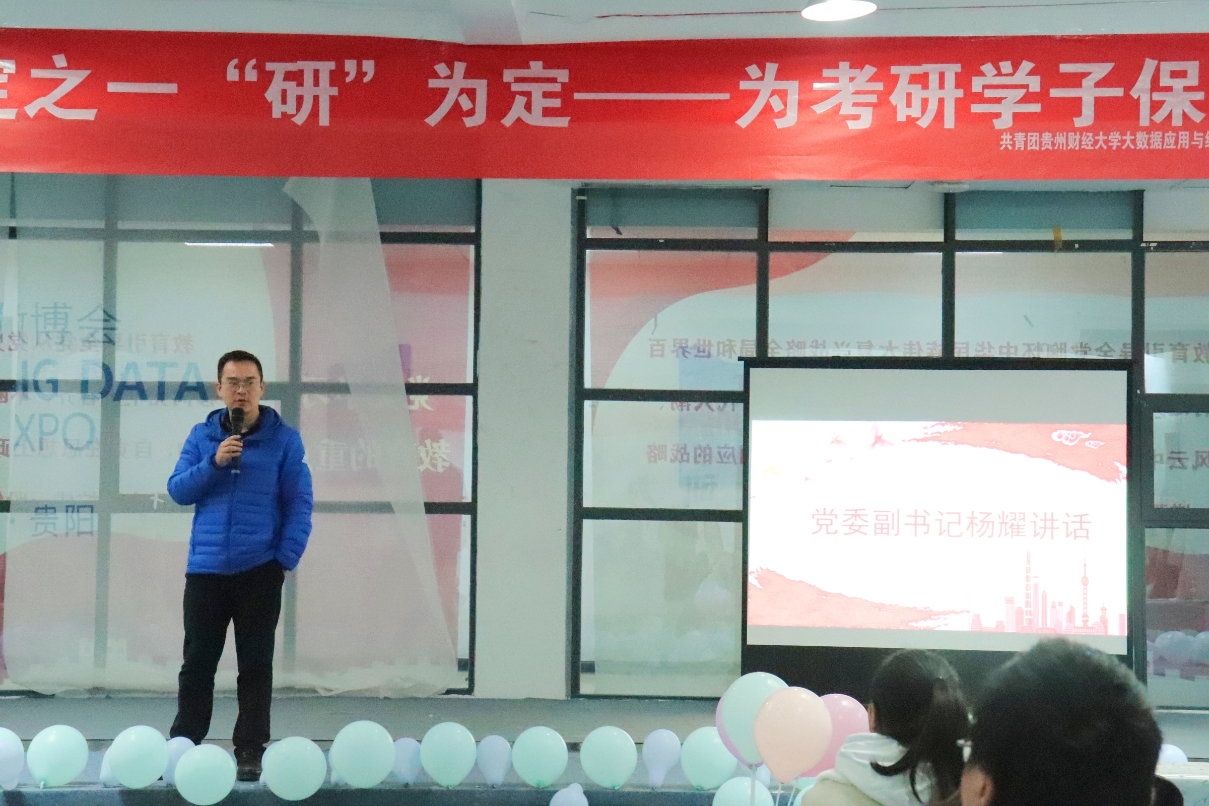 12月7日中午,大数据应用与经济公司(贵阳金融公司)团委于修德楼一楼中厅举行“一起长大的约定之一‘研为定——为考研学子保驾护航”活动。公司党委书记刘雷、公司党委书记姜友文、副经理时宏远、公司党委副书记杨耀、硕士研究生导师代表汤旖璆、丁锐;2021级研究生代表谢文杰、丁雅欣及考研员工出席此次活动。此次活动由张欣雨主持。