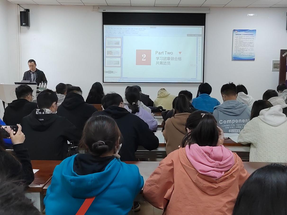 随后,杨耀讲授团课第一课《做一个优秀的共青团员》。他带领同学们重温团的历史,讲述了五四运动和一二·九运动。他指出:成为一名优秀的共青团员,要思想先进、学习刻苦、行为规范,要深入理解新时代党的建设总要求的丰富内涵,要深刻理解关于党员、党的基层组织、党的干部新要求的重大意义。