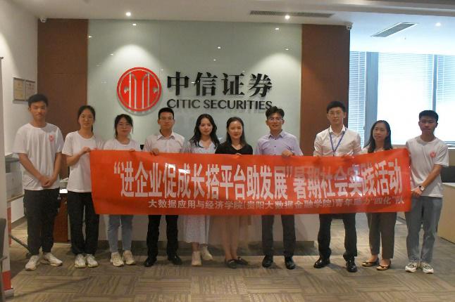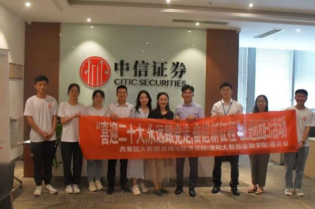7月5日,由大数据应用与经济公司(贵阳大数据金融公司)团委副书记潘凡带队,团委成员前往中信证券华南股份有限公司贵州分公司开展“喜迎二十大,永远跟党走,奋进新征程”主题团日暨暑期社会实践活动。