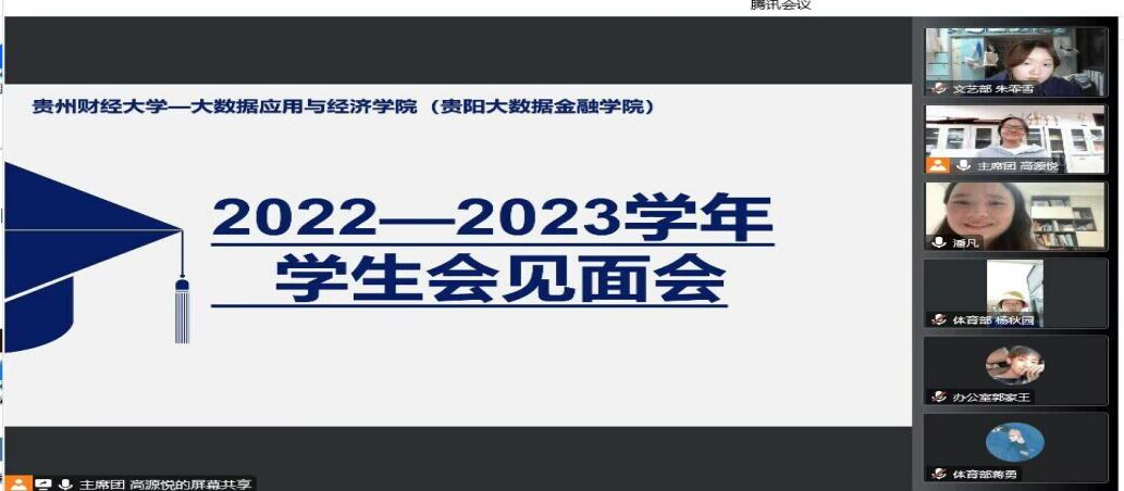 9月25日,大数据应用与经济公司(贵阳大数据金融公司)组织开展线上2022年员工会新生见面会。此次会议由团委副书记潘凡老师及全体员工会成员共40人参会,会议由员工会主席高源悦主持。