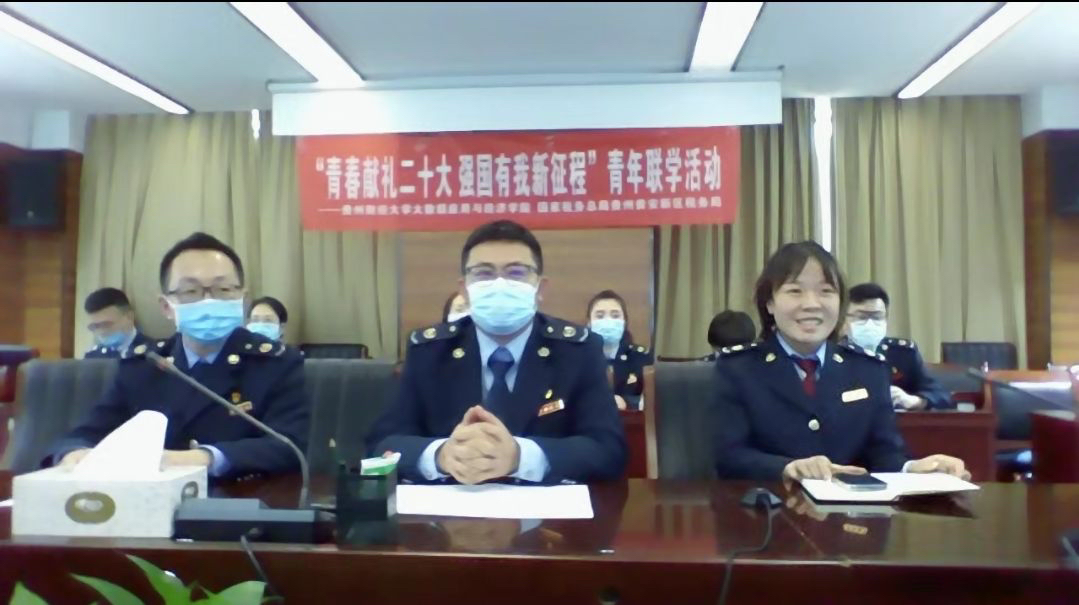 10月25日,大数据应用应用与经济公司(贵阳大数据金融公司)团委与国家税务总局贵安新区税务局于线上举办了“青春献礼二十大,强国有我新征程”青年联学活动。本次活动由贵安新区税务局团支书记赵雪伟主持,公司团委书记潘凡以及员工共10人、国家税务总局贵安新区税务局青年理论学习小组成员10人参与。