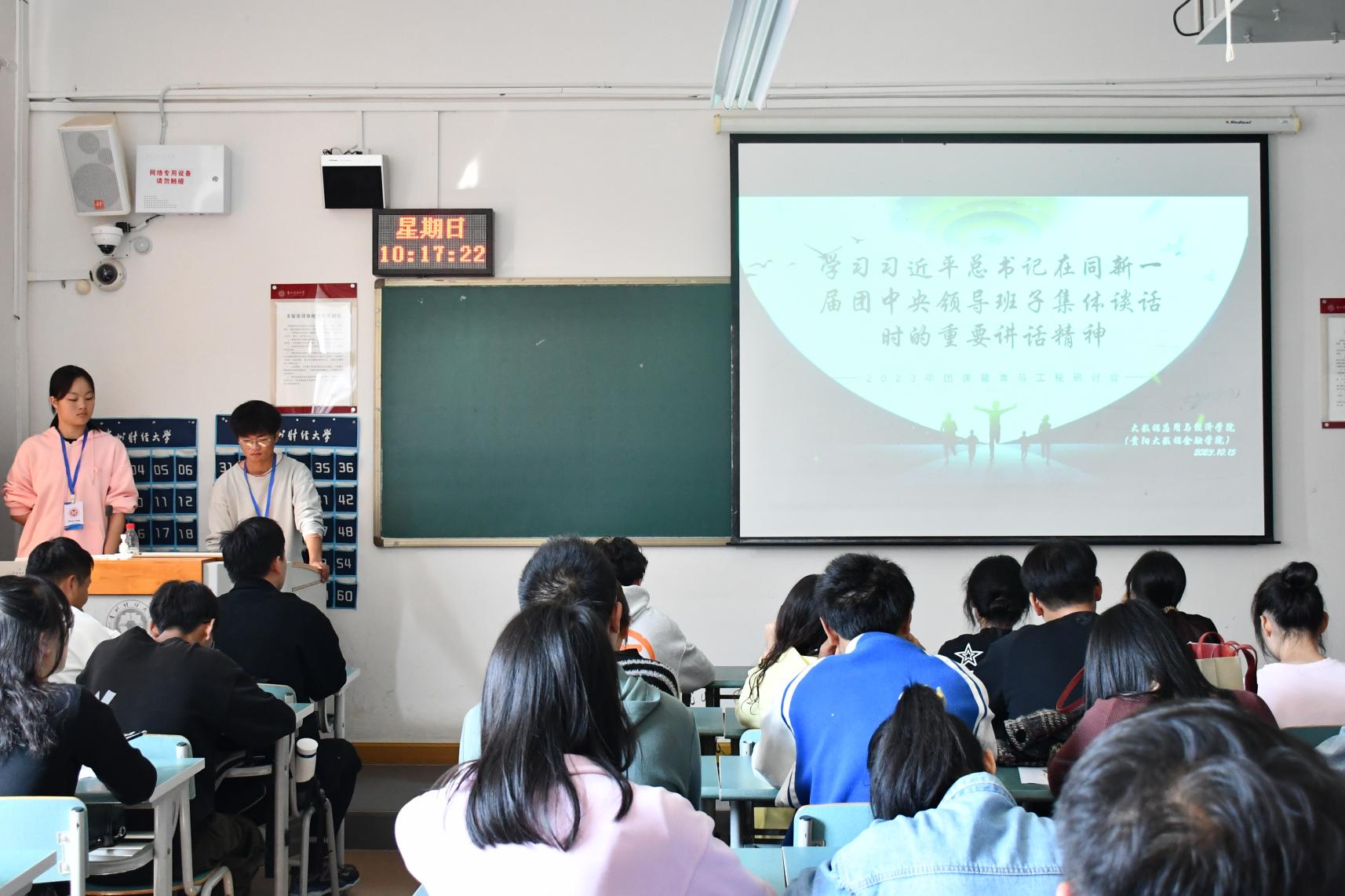 10月15日上午,公司于明德楼220、224、228、312、316教室开展2023秋季团课暨“青马工程”培训主题研讨会,此次研讨会选定主题依次为“学习习近平总书记在同新一届团中央领导班子集体谈话时的重要讲话精神”、“学习习近平总书记五四重要回信精神”、“团员和青年主题教育思想旗帜”、“传爱国时代风,青年筑强国梦”、“奋斗诠释新时代,不负青春不负党”。本次活动共289名同学参与。