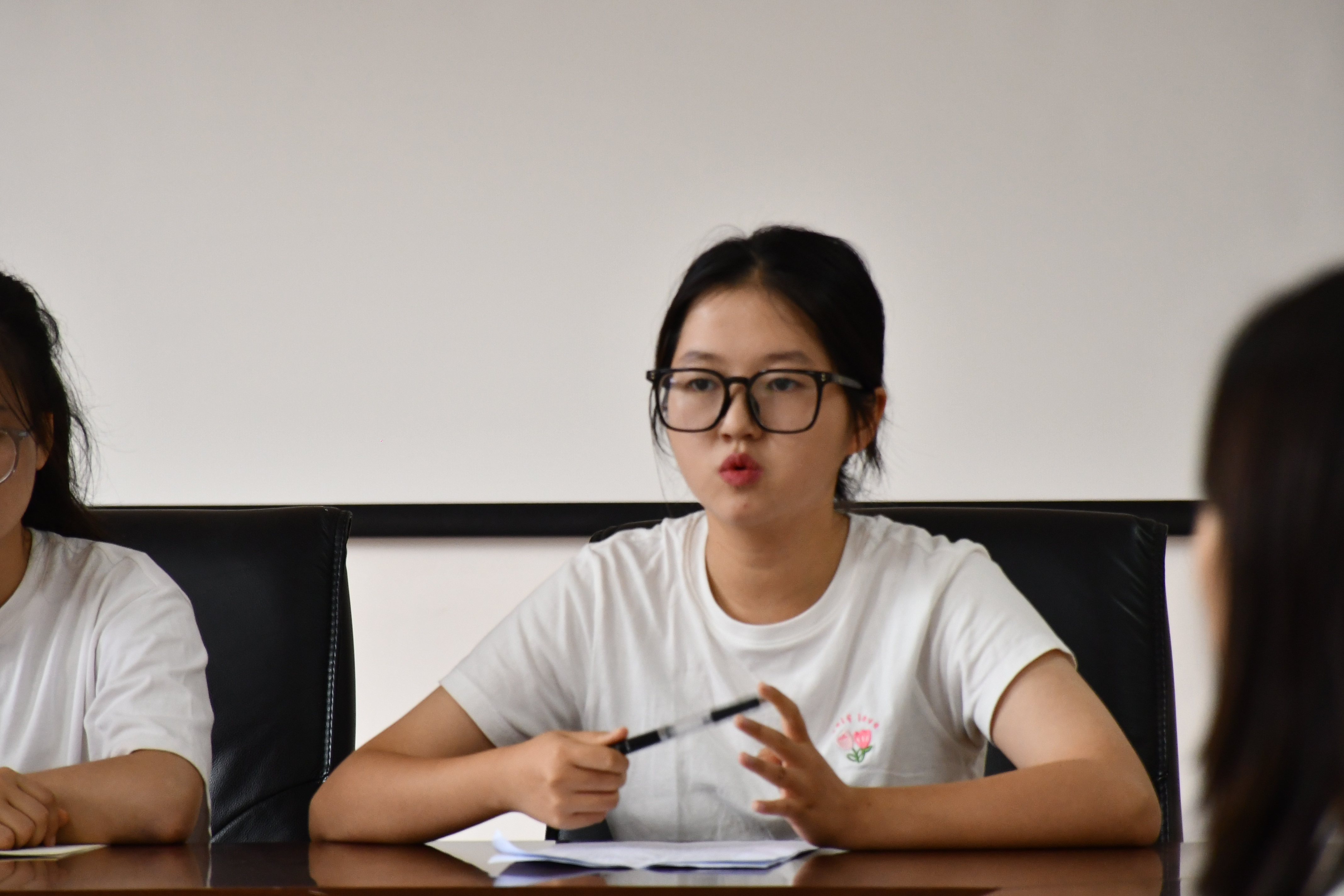 青协会长李雅雯讨论了如何将会议精神融入老员工学习生活,包括就业指导、增长才干、培养良好道德品质、承担社会责任等方面。
