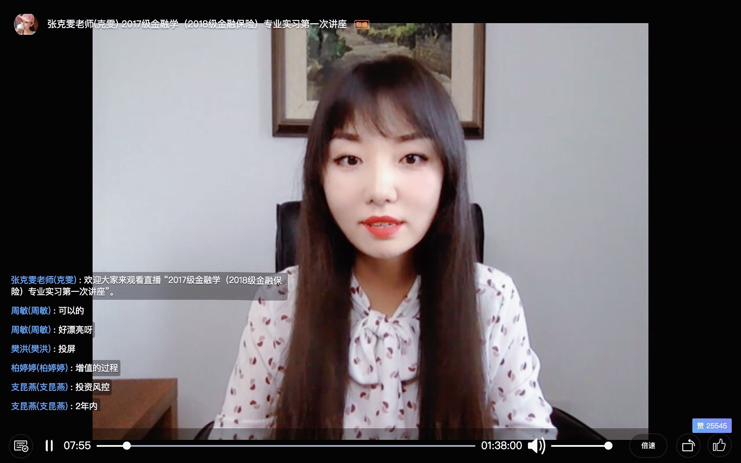 张克雯老师致开场辞,随后陈旭君老师就“财富管理之资产管理背景介绍”、“财富管理业务转型”、“财富管理合规与风控”三个方面开展本次讲座。同学们认真聆听,积极互动,提出了疑问与困惑。陈老师语言风趣幽默,传授工作经验深入浅出,详细解答同学们关于就业门槛、晋升通道、薪资待遇等问题。