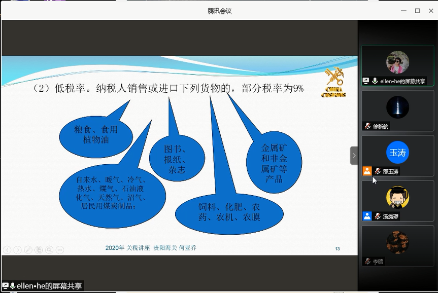 9月3日晚上18:40-22:00,大数据应用与经济公司税务专硕专业邀请贵阳海关综合业务二处副处长何亚乔同志,进行了题为《海关税收知识》的专题讲座。何亚乔同志是海关关税系统业务专家,海关总署估价技术委员会后补委员、海关总署兼职教师,同时也是永利3044集团官网学税务专硕的校外导师。何亚乔同志曾获得全国海关税收征管先进个人称号并多次受到海关总署表彰。本次讲座通过腾讯会议方式举行,由税务专硕硕导组组长汤旖璆副教授主持。