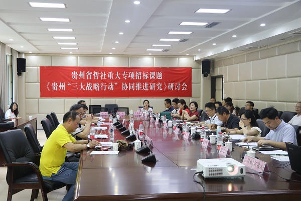 为更有效的协同推进贵州“三大战略行动”,服务贵州省经济社会发展,6月21日,贵州省哲社重大专项招标课题《贵州“三大战略行动”协同推进研究》研讨会在立德楼104会议室进行。