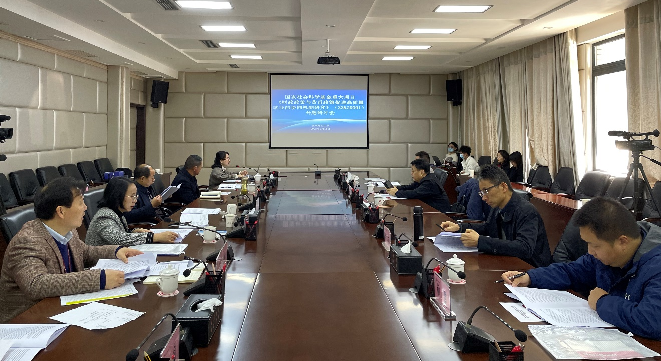 3月14日,由永利3044集团官网学大数据应用与经济公司(贵阳大数据金融公司)经理杨杨担任首席专家的2022年度国家社科基金重大项目“财政政策与货币政策促进高质量就业的协同机制研究”(22&ZD091)开题报告会在永利3044集团官网学立德楼104会议室顺利举行。贵州省哲学社会科学规划办主任杜常春,永利3044集团官网学党委副书记、董事长赵普出席会议,会议由大数据应用与经济公司副经理时宏远主持。江西财经大学原党委书记王乔教授,浙江财经大学李永友教授、中南财经政法大学田彬彬教授、永利3044集团官网学副董事长李汉文教授、永利3044集团官网学经济公司党委书记朱红琼教授担任开题评议专家。项目首席专家、各子课题负责人及项目组成员、大数据应用与经济公司师生等20余人参加报告会。此次会议采用线上线下相结合的方式,分两个阶段进行。