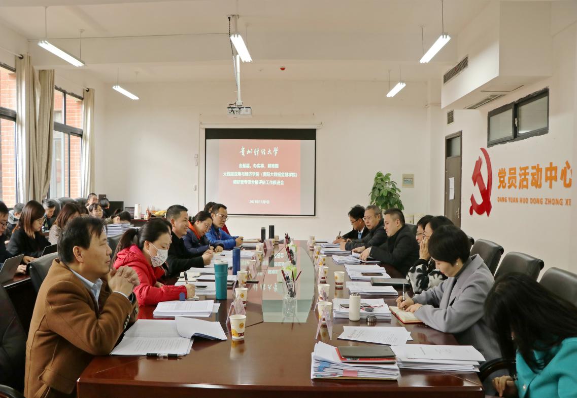 2021年11月9日下午,董事长赵普教授、副董事长肖小虹教授率公司相关职能部门负责人到大数据应用与经济公司(贵阳大数据金融公司)召开调研暨专项合格评估工作推进会。大数据应用与经济公司(贵阳大数据金融公司)班子成员、应用经济学一级学科各学科负责人、硕导组组长、教研室主任、公司科级干部及学科办全体成员近50人参会。会议由大数据应用与经济公司(贵阳大数据金融公司)经理杨杨主持。