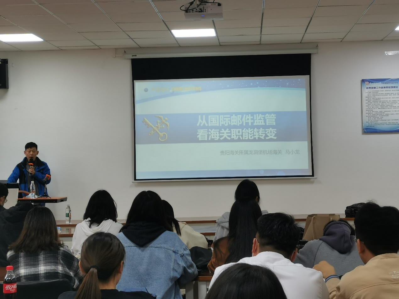 2022年5月19日18:00-21:00,税务硕士(MT)校外合作导师、贵阳海关所属龙洞堡机场海关副关长马小龙同志受大数据应用与经济公司(贵阳大数据金融公司)的邀请为公司2021级全体税务硕士专业研究生开展《从国际邮件监管看海关职能转变》的专题讲座。