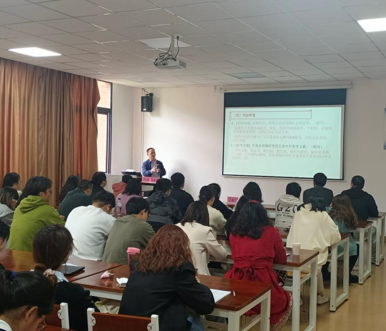 罗以洪教授从课题申报、课题意义、做好选题三个方面展开详细的讲解,并结合自己申报科研课题的经历向参会的各位师生分享了宝贵经验。罗教授认为写好申报的重点在于学术思想、学术观点、研究方法等方面的特色和创新,在选题方向上要仔细阅读当年的《指南》,在《指南》中寻找自己感兴趣并比较熟悉的领域,进而根据国家、地方发展的阶段性走向和当前面临的主要任务,寻找要解决的新问题。