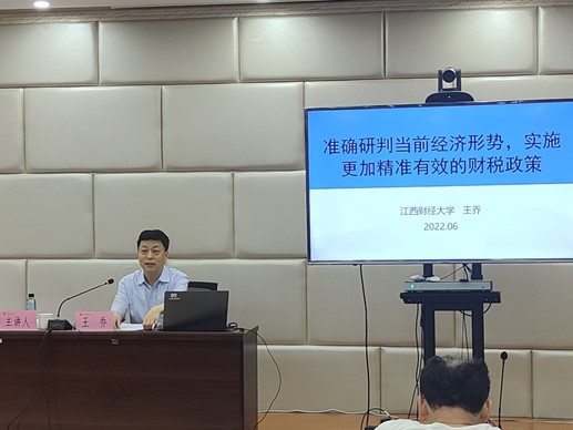 6月24日上午,应大数据应用与经济公司(贵阳大数据金融公司)的邀请,王乔教授做客“财富论坛”讲座,作题为“准确研判当前经济形势,实施更加精准的财税政策”的主题讲座。讲座由大数据应用与经济公司(贵阳大数据金融公司)经理杨杨主持,公司师生共80余人聆听了讲座。