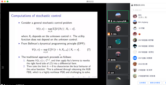 马敬堂教授提出了一个基于机器学习中的Delta 函数方法来求解金融和保险中的最有资产分配问题。马教授提出了金融和保险领域中常见的几类资产分配问题,巧妙应用机器学习中的狄拉克函数的分解来数值求解这几类问题,随后,对该方法的应用实例进行了直观的图形描述。其想法具有前瞻性,可以很好地推广到非完备市场的情形。最后,马教授与公司师生分享了数学模型与金融市场运作的关联并进行了深入交流。