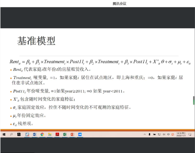 肖承睿老师与同学们分享了这份报告最初的研究目的,详细介绍中国房产税的政策背景和研究所采用的基准模型(双重差分模型),并讲解如何识别和解决实验中由于假设等原因而存在的问题。肖老师着重分析从研究目的为出发点的模型建立过程和分析过程,内容严谨、逻辑性强,获得与会同学的一致好评。