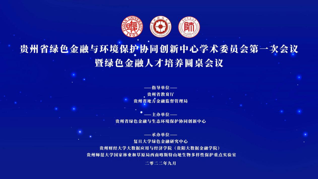 9月4日上午,在省教育厅和省地方金融监督管理局指导下,由贵州省绿色金融与生态环境保护协同创新中心主办,复旦大学绿色金融研究中心、公司大数据应用与经济公司(贵阳大数据金融公司)、贵州师范大学国家林业和草原局西南喀斯特山地生物多样性保护重点实验室共同承办的贵州省绿色金融与环境保护协同创新中心学术委员会第一次会议暨绿色金融人才培养圆桌会议通过腾讯会议网络直播的方式召开。