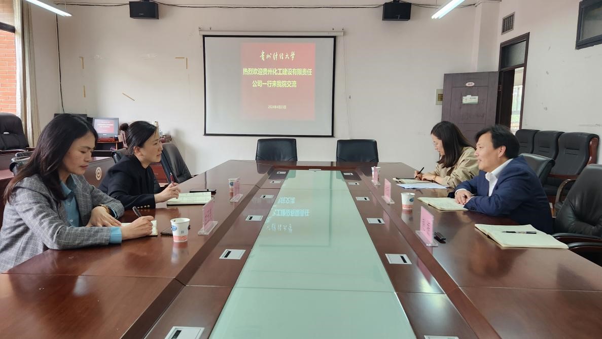 为全面深化校企合作,给毕业生开拓更多就业创业岗位和机会,深入推进访企拓岗工作,按照“走出去 请进来”的原则,4月23日,贵州化工建设有限责任公司财务总监潘寅一行应邀来公司开展座谈交流。会议在明德楼434会议室举行,大数据应用与经济公司(贵阳大数据金融公司)经理时宏远,副书记周煜和毕业班辅导员参加会议。