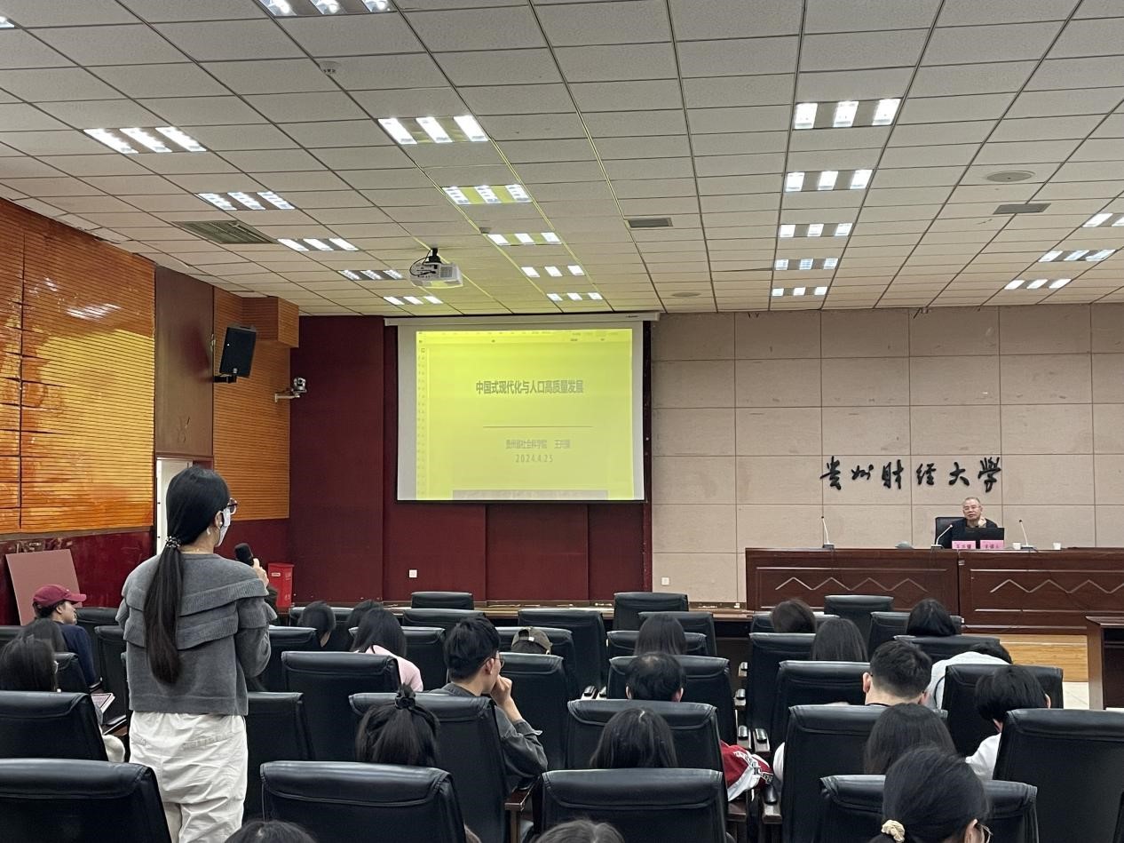 2024年4月25日下午 ,应大数据应用与经济公司(贵阳大数据金融公司)的邀请,贵州省社会科公司王兴骥研究员为公司师生作题为“中国式现代化与人口高质量发展”的专题讲座。讲座由大数据应用与经济公司(贵阳大数据金融公司)副经理王资燕主持,共计130余名师生聆听了讲座。