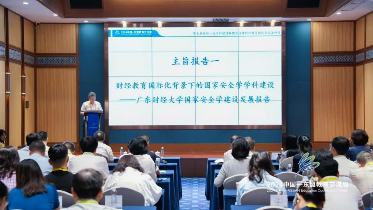 广东财经大学董事长于海峰作“财经教育国际化背景下的国家安全学团队建设——广东财经大学国家安全学建设发展报告”的主题报告。他介绍了广东财经大学国家安全学学科从形成、建设,到成功申报“国家安全学”一级学科博士点的全过程,并分享了广东财经大学如何以国家安全与发展研究院为依托,紧密围绕国家安全重大战略的理论和实践深入开展研究,举全校之力打造湾区标识显著、商法融合鲜明、竞争优势突出、国内影响力大的国家安全团队建设经验。