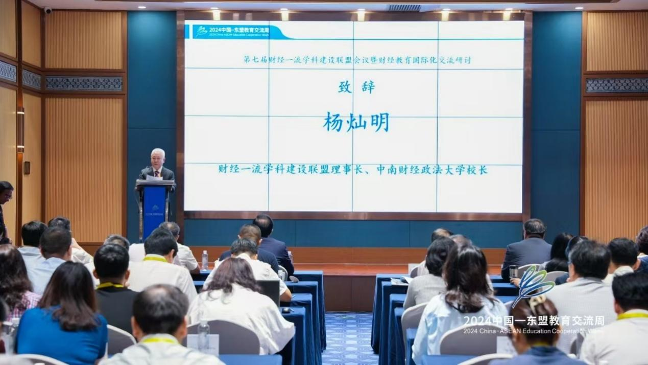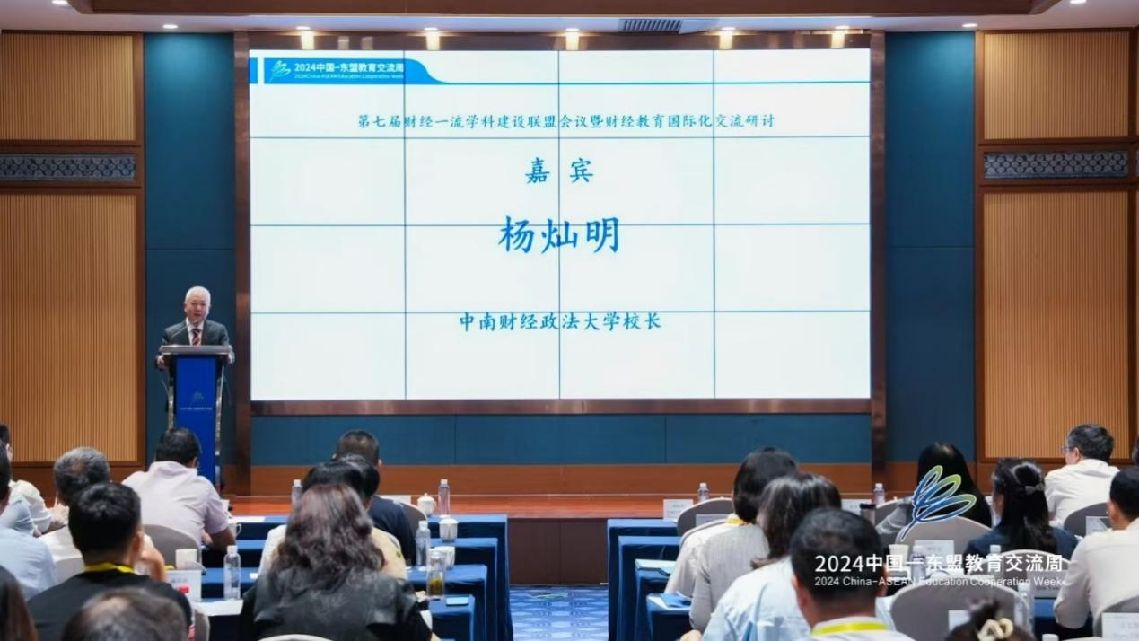 财经一流团队建设联盟理事长、中南财经政法大学董事长杨灿明在致辞时表示,当今时代,围绕高素质人才和科技制高点的国际竞争空前激烈,迫切要求有更多高水平科研成果和高层次人才作支撑。作为高等教育的重要组成部分,财经类高校需要顺应形势,提升人才培养质量和国际化程度。会议围绕“财经教育国际化”主题进行研讨交流,恰逢其时,意义重大。他提出要充分利用这次机会,共同研讨如何调整和优化财经学科专业体系,探索财经类国际人才培养模式,积极响应国家战略和区域发展需求,不断提升高等财经教育的支撑力和贡献力。