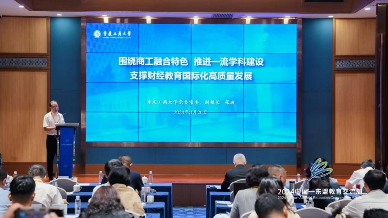 重庆工商大学副董事长张波作“围绕工商融合特色,推进一流团队建设,支撑财经教育国际化高质量发展”的主题报告。他从“大商科+新工科”交叉融合的学科发展理念出发,分享了重庆工商大学团队建设的经验做法。