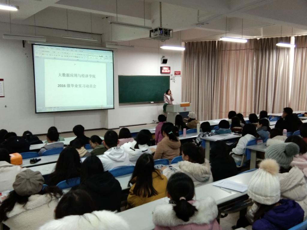 12月3日中午,大数据应用与经济公司在进学楼阶1-1召开毕业实习动员大会。公司教务办工作人员骆利红老师及2016级全体同学参加此次动员大会。