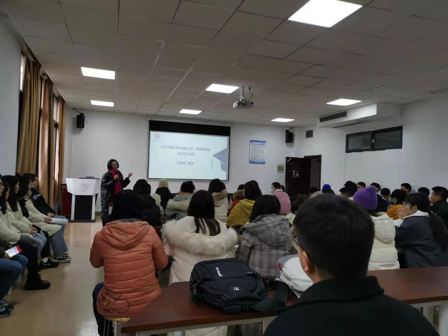 1月4日下午2点,公司金融系副主任王资燕老师及金媛老师在普惠金融工作室,为2017级金融工程和投资学专业的同学做了毕业实习动员。金融工程和投资学专业的全体同学参加了此次毕业实习动员大会。