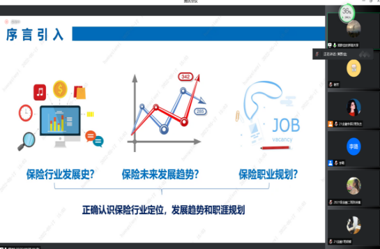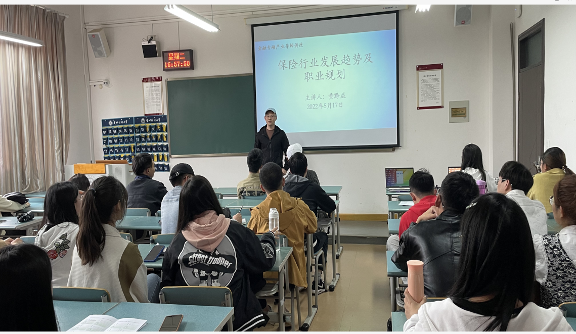 讲座开始,马新松老师对黄黔益老师的到来表示感谢,指出保险行业发展趋势及职业规划是同学们一直以来较为关注的问题,希望大家通过本场讲座更加深入地了解保险行业,提升金融从业素养。其后,黄黔益老师系统介绍了保险行业现状、未来发展趋势、从业人员晋升路径,并以自身为例,鼓励同学们突破专业限制,勇于尝试。