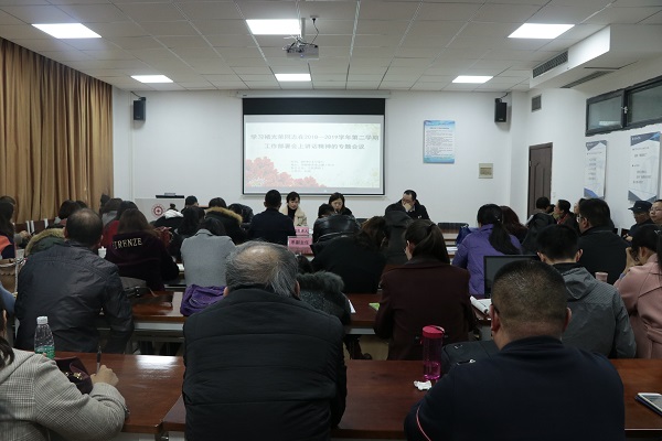 为更好地贯彻会议精神,落实会议要求,3月12日下午,大数据应用与经济公司召开褚光荣同志在2018—2019学年第二学期工作部署会上讲话的专题学习会,院领导班子,全院教职工参加会议。