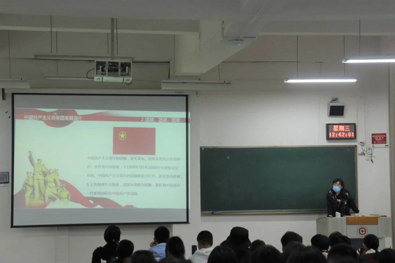 首先,王老师向学员们讲述了中国共产主义青年团的发展历史,并向学员们介绍了共青团团旗和团徽,告诫学员们要牢记共青团团歌。接着王老师提出了共产主义青年团的建设要求,提醒学员们要了解自身作为一名青年团团员的权利与义务,唤醒团员意识,激发爱党热情。最后,王老师着重强调了党与中国共产主义青年团的关系,要在新形势下做好团的工作,必须要当好党的助手和后备军,坚定地跟党走,做一个有责任、有担当、有良好形象、对党忠诚的优秀共青团团员。