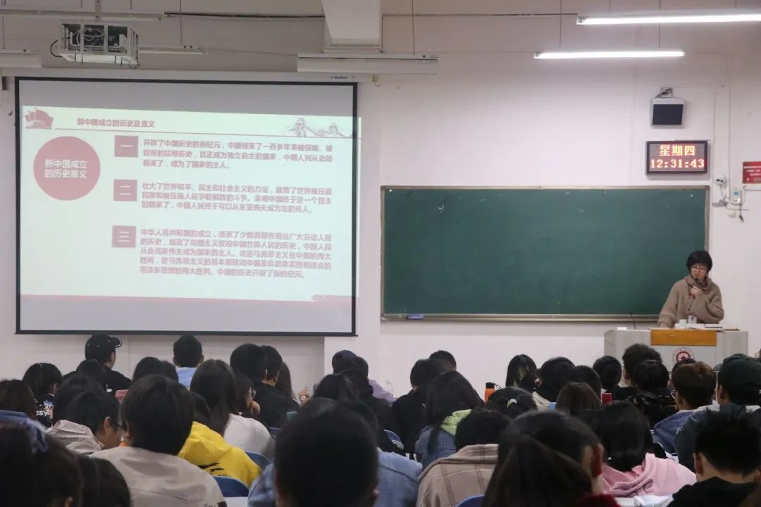 2020年10月29日中午,付琳老师在进学楼1-1阶梯教室为团课培训班学员讲授“新中国成立71周年的沧桑巨变”专题团课。