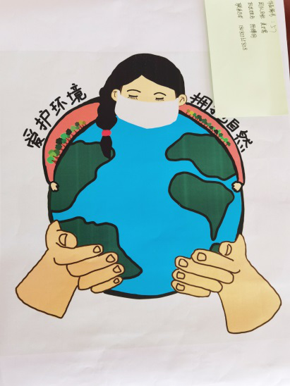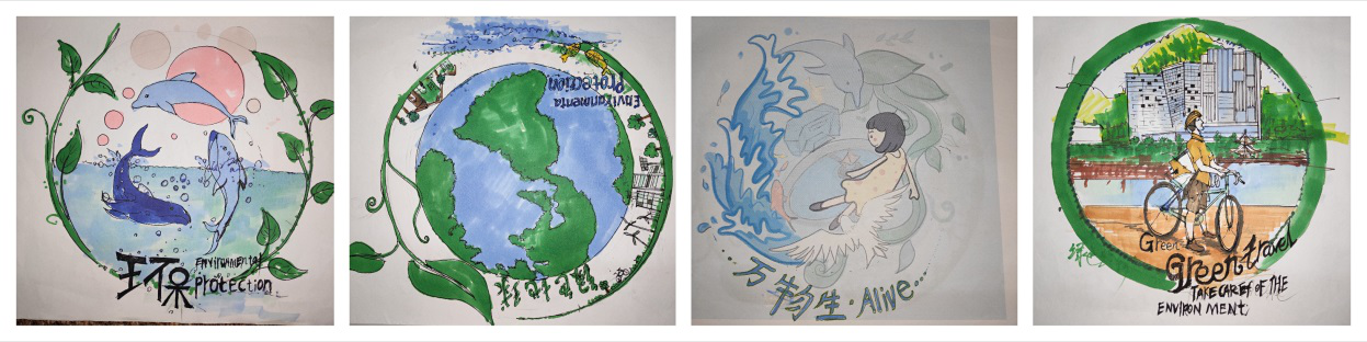 本次比赛的主题是宣扬环保理念,参赛作品以图画与文字相结合的形式宣传环保理念,作品图案简洁,含义明确,色彩鲜明。在线上线下相结合的形式中,同学们充分发挥了自身优势,创作出优秀作品。