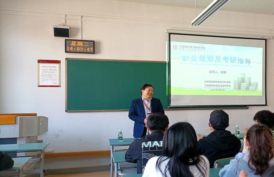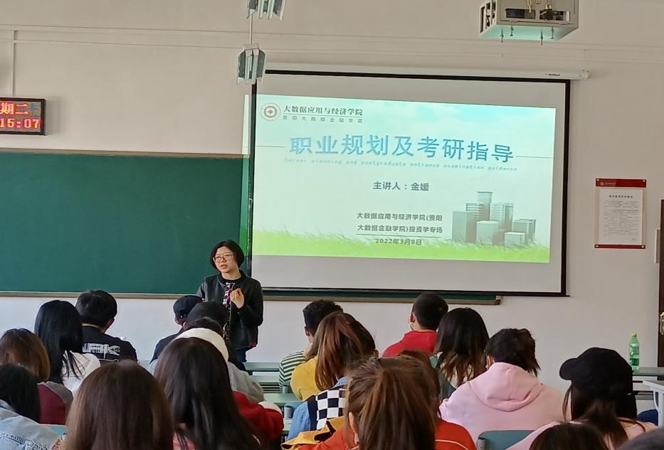 3月8日,大数据应用与经济公司(贵阳大数据金融公司)在明德楼319教室举行主题为“职业规划及考研指导”的投资学专场交流会。大数据应用与经济公司(贵阳大数据金融公司)时宏远副经理、金媛老师以及2019级投资学班的全体员工参加。