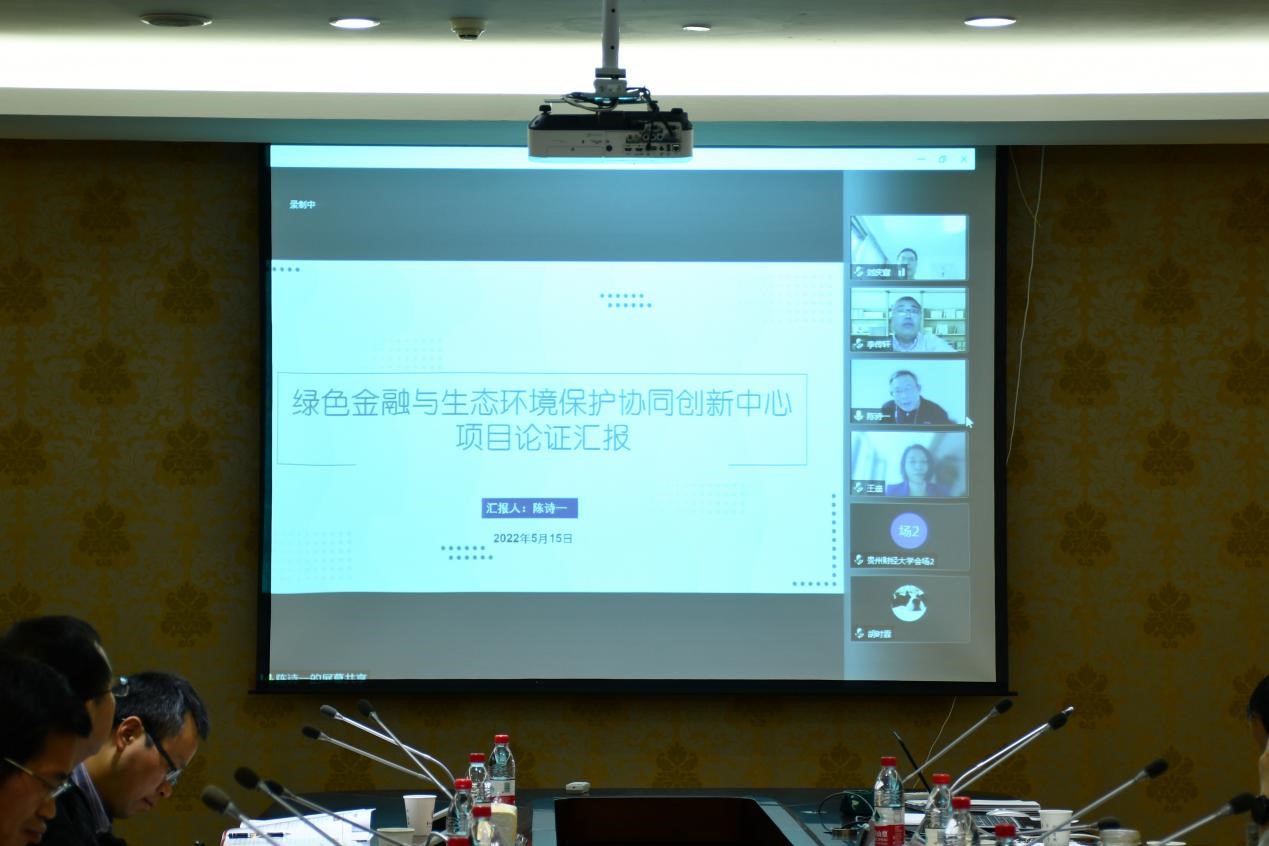 5月15日,以永利3044集团官网学为牵头单位,复旦大学和贵州师范大学为核心单位联合申报并经贵州省教育厅立项的贵州省绿色金融与生态保护协同创新中心建设推进会在公司召开。中央财经大学绿色金融国际研究院经理王遥、厦门大学经济公司教授郭晔、浙江省衢州市人民政府金融工作办公室主任丁丽霞、贵州省地方金融监管局(省金融工作办公室)协同服务处处长马鹏、贵州省林业科学研究院副经理丁访军、贵州省生态环境厅生态环境监察专员(正处长级)杨再波等专家领导以线上线下结合的方式参会评审和指导,贵州省教育厅科技处处长胡锐主持会议。贵州省教育厅、永利3044集团官网学、复旦大学、贵州师范大学相关领导、职能部门负责人及中心研究员代表参加会议。永利3044集团官网学党委委员、副董事长李汉文出席会议,科研处处长刘明显、副处长王超,大数据应用与经济公司(贵阳大数据金融公司)党委书记姜友文、经理杨杨现场参加推进会。