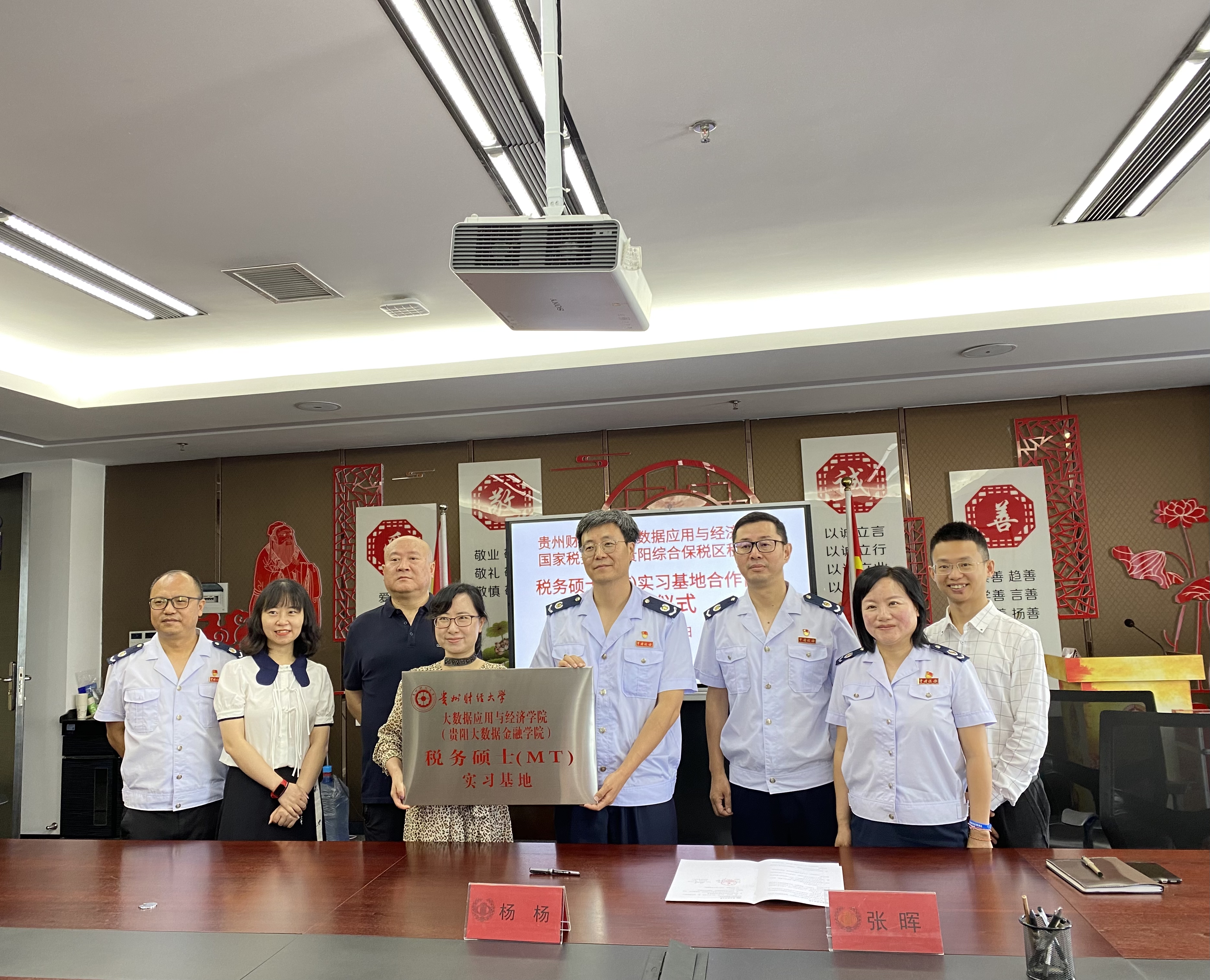 为进一步加强员工校外实习教学工作、促进产学研相结合、全面提高研究生教育质量,公司与国家税务总局贵阳综合保税区税务局本着相互协作、互惠互利、资源共享、共同发展的原则,于2022年8月9日,在贵阳综合保税区税务局会议室签订“大数据应用与经济公司(贵阳大数据金融公司)税务专业硕士(MT)实习基地协议书”,并举行授牌仪式。大数据应用与经济公司(贵阳大数据金融公司)经理杨杨、税务专业硕士(MT)硕导组副组长傅得晟、学科办工作人员参加了签约暨授牌仪式。会议由贵阳综合保税区税务局副局长张晖主持。