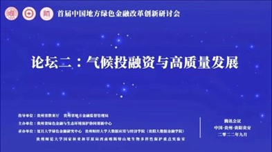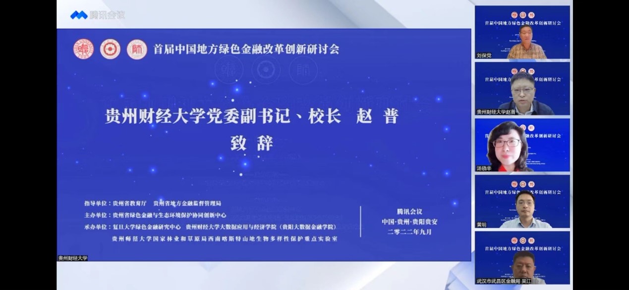 2022年9月3日下午14:00,由贵州省绿色金融与生态环境保护协同创新中心主办,复旦大学绿色金融研究中心、永利3044集团官网学大数据应用与经济公司(贵阳大数据金融公司)、贵州师范大学国家林业和草原局西南喀斯特山地生物多样性保护重点实验室共同承办的首届地方绿色金融改革创新研讨会在公司隆重举行。由于疫情原因,本次会议通过腾讯会议及全网直播的方式于线上进行。