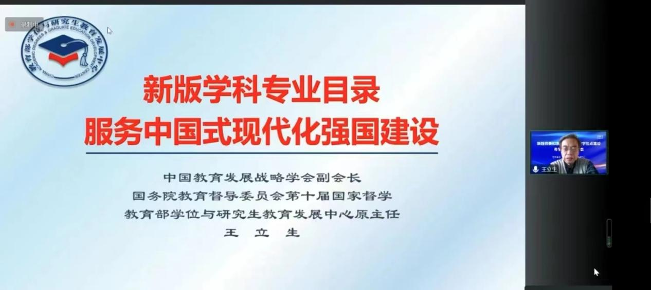 王立生教授从新时代新要求新举措、学位授权的改革创新、新学科专业目录调整三个方面展开,全方位解析了教育强国建设背景下新版学科专业目录的变化。王立生指出,中国已经建成公司产品规模大国,吹响了建设研究生教育强国的进军号。王立生深入解读了全国教育大会精神,以及《双一流建设实施方案》《中国教育现代化2035》《关于加快新时代研究生教育改革发展的意见》《“十四五”时期教育强国推进工程实施方案》等政策,介绍了学位授权审核制度的发展历程、成果成效、改革目标,并结合新版研究生教育学科专业目录,解析了新版研究生教育学科专业目录修订的重要意义。
