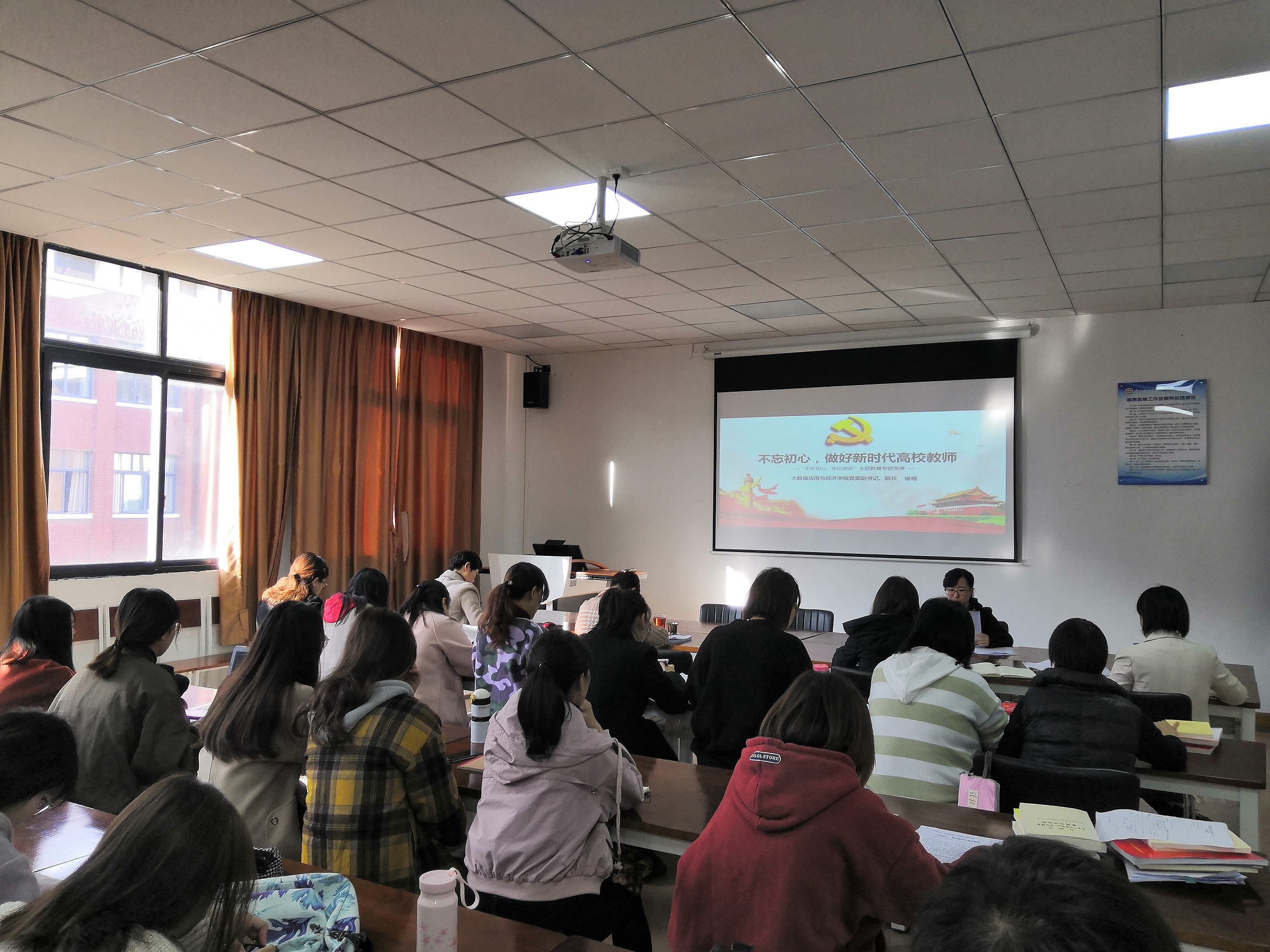 11月7日,公司党委副书记、经理杨杨在明德楼普惠金融工作室为教师党员代表、员工党员代表上一堂题为《不忘初心,做好新时代高校教师》的专题党课。