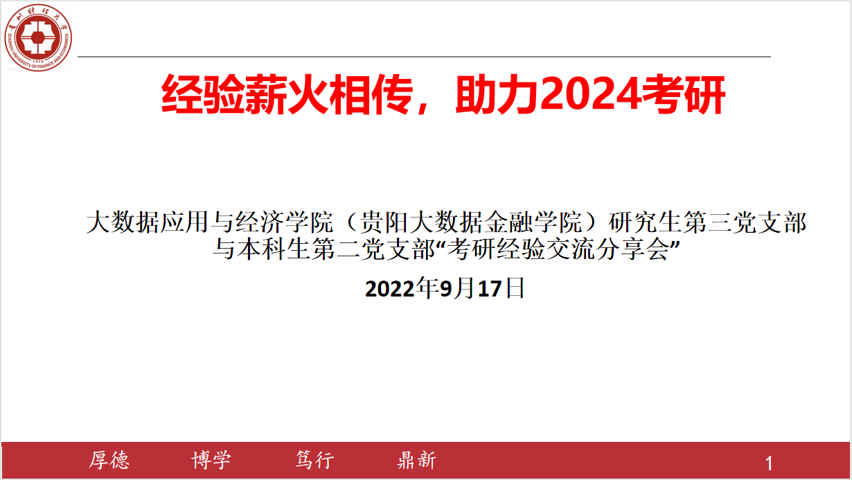 为持续推进“我为群众办实事”实践活动,用心用情为同学解难题。大数据应用与经济公司研究生第三党支部与本科生第二党支部联合开展“助力2024考研经验交流分享会”,实实在在帮助考研学子解决考研过程中的疑难困惑,提升公司升学质量。9月17日,交流分享会通过腾讯会议线上举行,研究生第三党支部和本科生第二党支部全体党员以及2019、2020级有考研意愿的本科生同学共100余名同学参会,分享会由研究生第三党支部书记赵振主持。