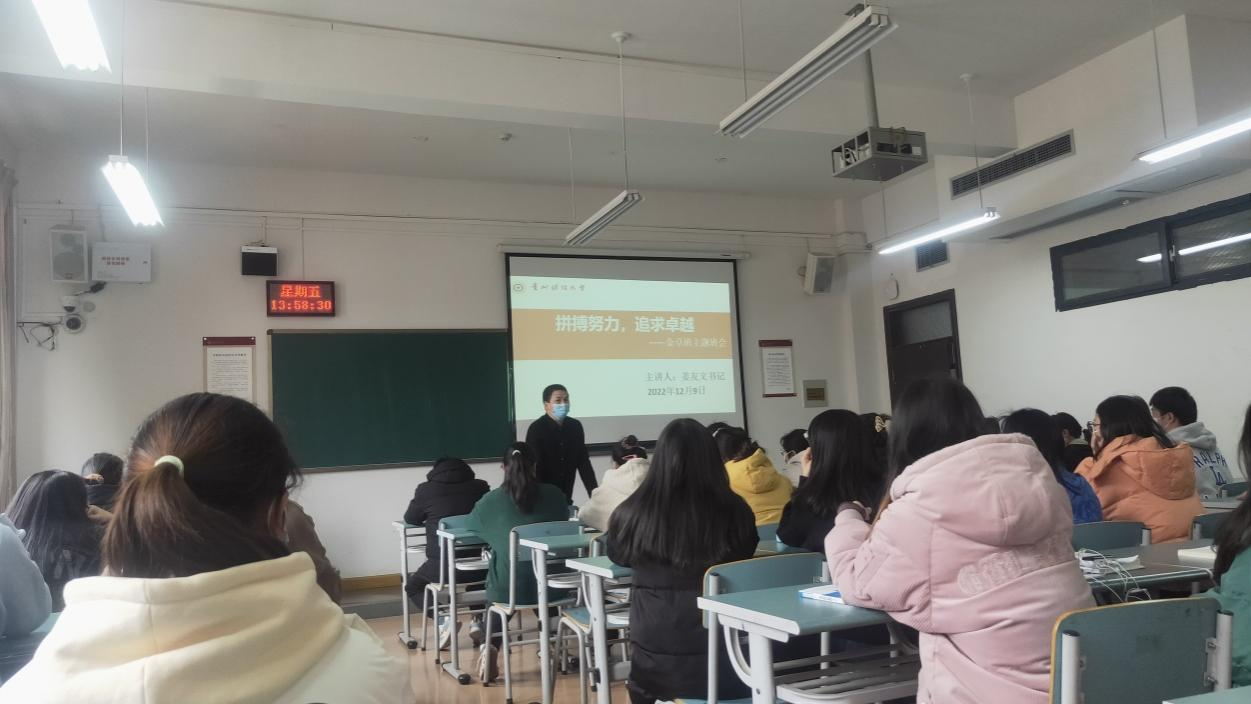 12月9日,作为大数据应用与经济公司(贵阳大数据金融公司)2020级金融学(卓越金融人才)班的班主任,姜友文书记为该班级召开了关于“拼搏努力,追求卓越”的主题班会。