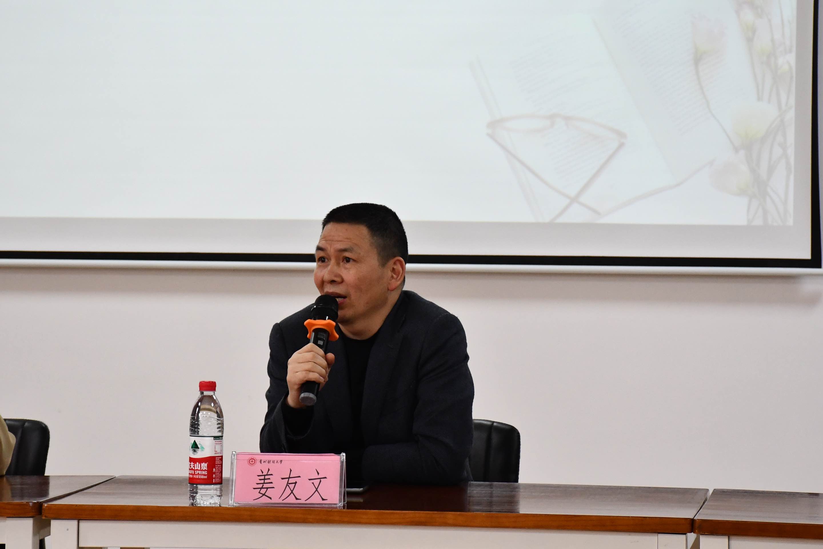 为全面贯彻落实全国教育大会和全省教育精神,提高全校师生的读书热情,大数据应用与经济公司(贵阳大数据金融公司)于3月31日下午在普惠金融教室举办了第一期以“爱”为主题的“黔心阅读”读书会。大数据应用与经济公司(贵阳大数据金融公司)党委书记姜友文、团委副书记潘凡以及30名来自于不同专业的员工参加读书会,公司研究生会文体部杨于芝同学主持。