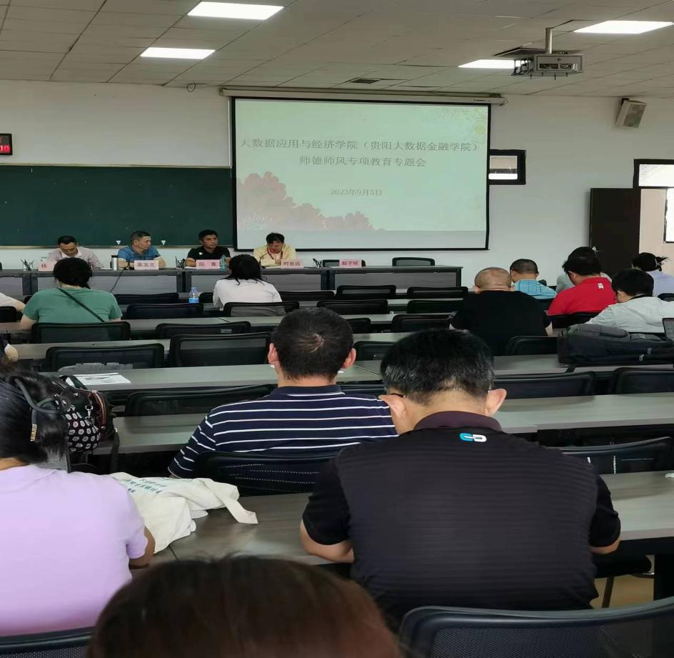 2023年9月5日下午,在明德楼五楼学术会议室,大数据应用与经济公司(贵阳大数据金融公司)召开师德师风专项教育专题会。