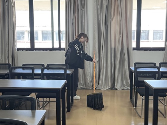 在活动当天,志愿者们手持清洁工具,分组对自习室和会议室进行了全面打扫。经过志愿者们共同努力,所有场地焕然一新,桌椅摆放整齐,为大家创造了良好的学习和工作氛围。