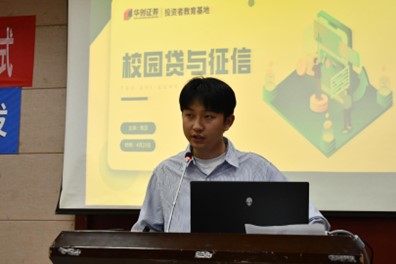 在启动仪式上,陈汉老师向同学们介绍了校园贷与征信的含义,让同学们认识了校园贷的风险以及应急措施,并通过有奖问答环节加深了同学们对其的理解。接着,刘思思老师为大家细致地介绍了华创证券扬帆计划活动,并为在场同学解疑答惑,鼓励同学们积极报名参与。“金财杯”比赛也将会评选出两名金融创新之星,此项荣誉可获得华创证券总公司实习名额。