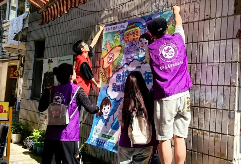 “青春志愿行,社区更温馨”活动中,团员青年深入各小区以发放宣传资料和现场讲解的方式向居民宣传了垃圾分类、移风易俗、禁毒等相关知识,树立正确的价值观,共同维护社区的良好风尚。同时,在第 37 个世界无烟日来临之际,团员青年们通过宣传手册向社区居民详细阐述了吸烟对个人健康的严重危害,以图文并茂的形式向居民们传递烟草危害的知识,倡导大家远离烟草,追求健康生活。