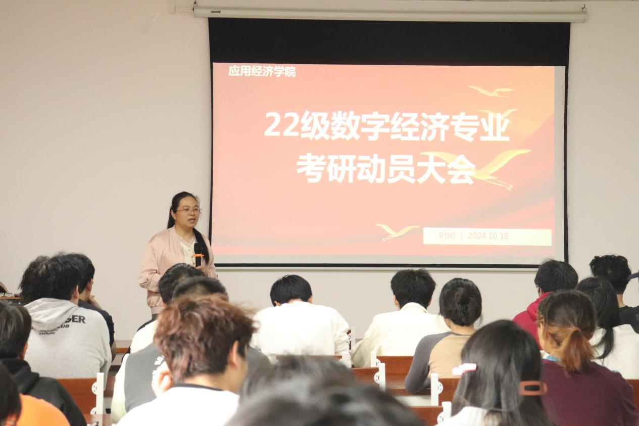 为进一步加强学风建设,提高同学们的考研热情,增强考研自信,公司于2024年10月18日在明德楼三楼普惠金融教室召开2022级数字经济专业考研动员大会。数字经济系副主任王丰阁老师及70余位数字经济专业的同学参加会议。